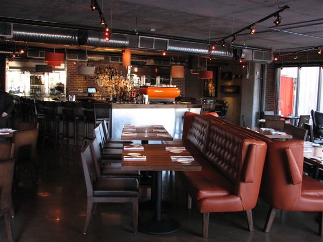 brick walls, exposed ductwork, dark wood and stainless steel—which