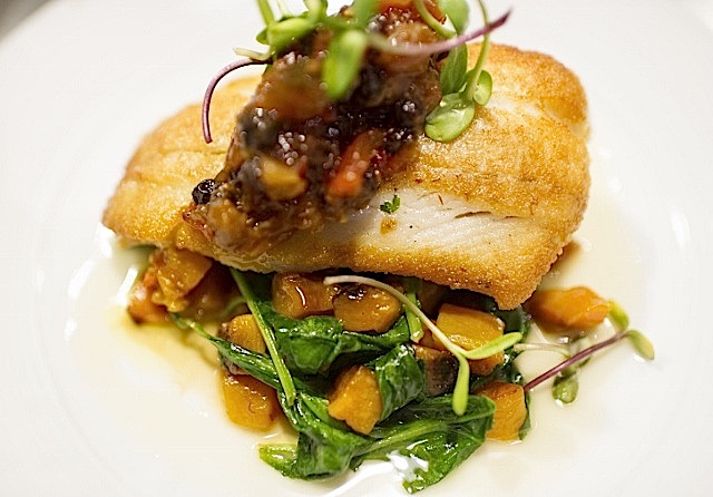 roast stuffed pork loin, over a sauté of