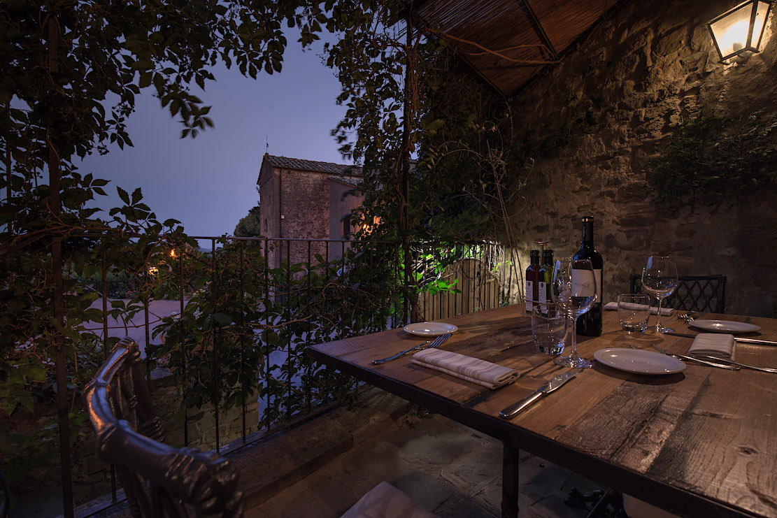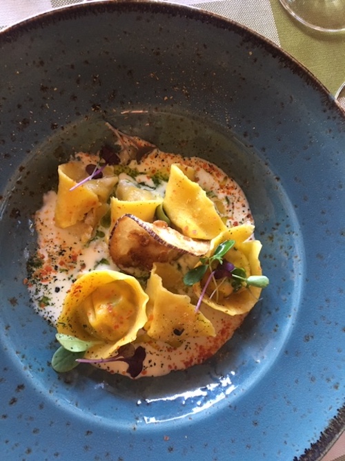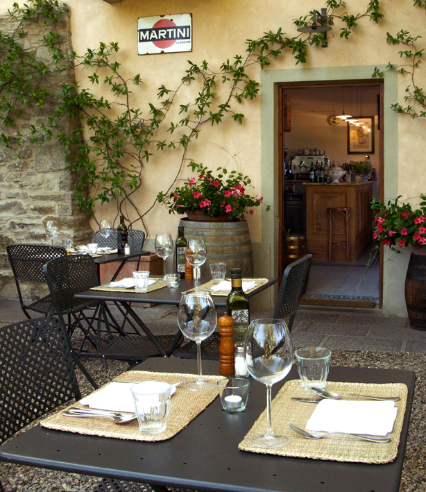 evening. A main course of spaghetti with truffles and truffle cream was a pasta loaded with earthy-tasting white and black varieties with an earthy sauce, and a grilled medium-rare, beefy entrecôte steak came with arugula topped with thin slices of Parmesan. A rich chocolate torta made an excellent finish. All dishes (even the chocolate) married perfectly with the ripe plum and cherry flavors of a 2013 Colle Bereto Chianti Classico. Of note, Radda offers a number of historic sites and local shops within its walls, and if you should stay overnight, a good choice would be the CDH Radda Hotel. It’s situated on a hillside, a two-minute car ride from the center of town, with clean, cozy rooms, most having a scenic view of the vineyards below and a spa as well as indoor and outdoor swimming pools, and a very friendly, helpful front desk staff. Open daily for lunch and dinner; expect to pay a very reasonable $75 for dinner for two, excluding wine. Osteria