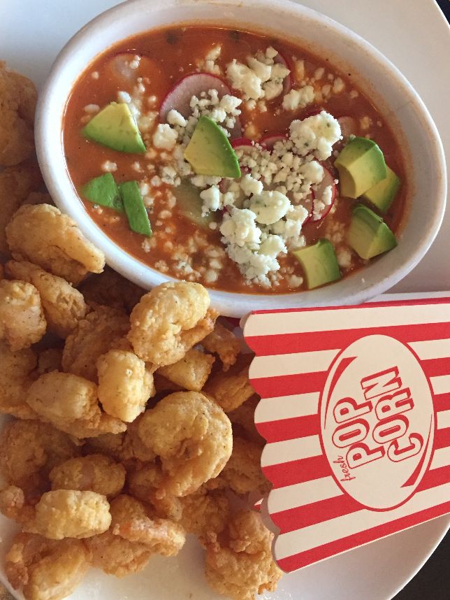 ($12.95), while Buffalo popcorn shrimp with avocado,