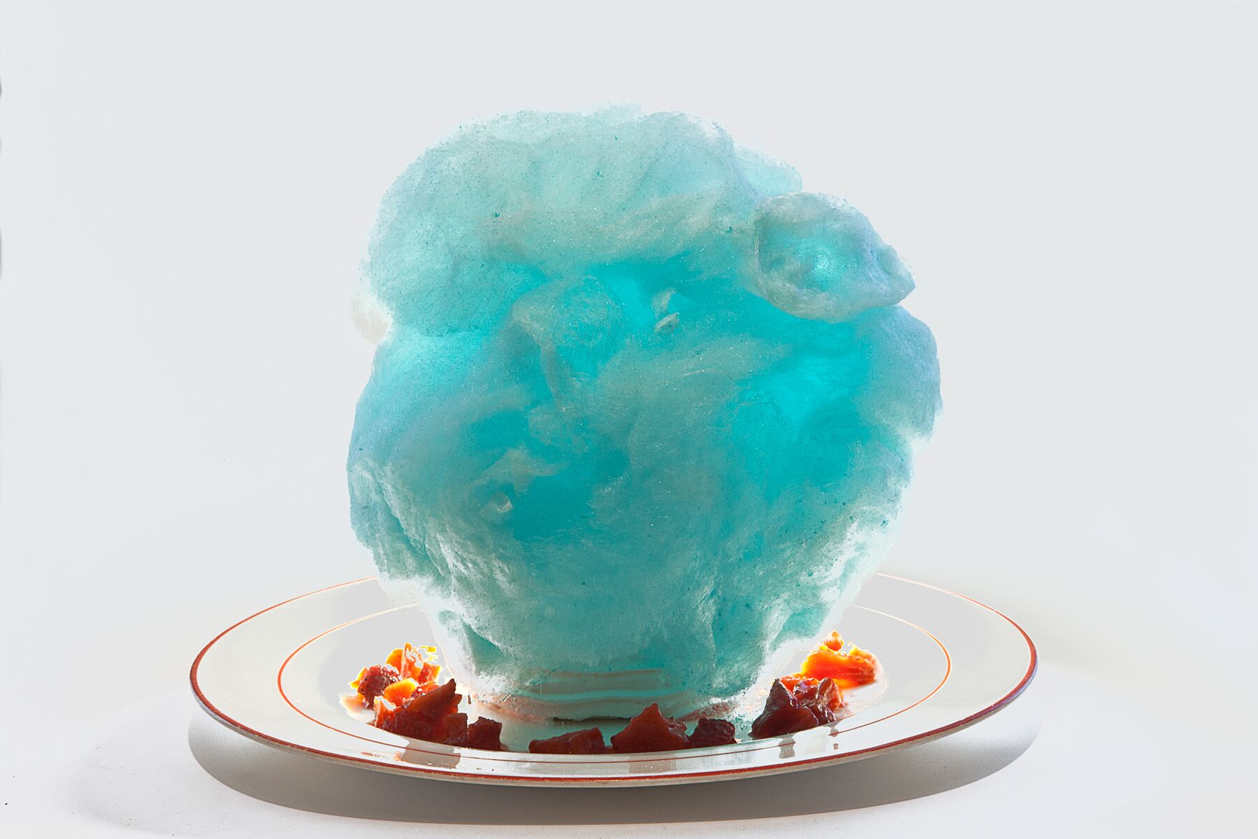 frosted cocoa nibs and vanilla ice cream; warm