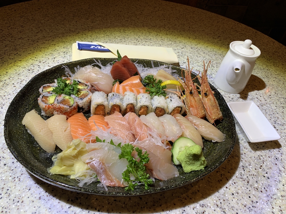 We’d already eaten a good deal by the time the “sushi & sashimi for two” ($75) arrived. This dish, with 10 pieces of sushi, 14 of sashimi, a spicy tuna roll and Alaska roll, is intended for two but fed four of us, and we still took some home. It was a beautiful array of various species dependent on availability—fluke, striped bass, salmon, toro, madai, sweet shrimp and more—and, served at the right temperature, every one of them had its own distinct flavor. We skipped dessert out of satiety, and left Mizu extremely happy, knowing we’d had some superb Japanese food at remarkably reasonable prices. Our bill for all these dishes, plus beer and sake, came to far less than it would have been at Sushi Ginza Onodera or Takashi, and less than the price for one person at Masa. Open Mon.-Fri. for lunch; dinner nightly. ❖❖❖ NOTES FROM THE WINE CELLAR
