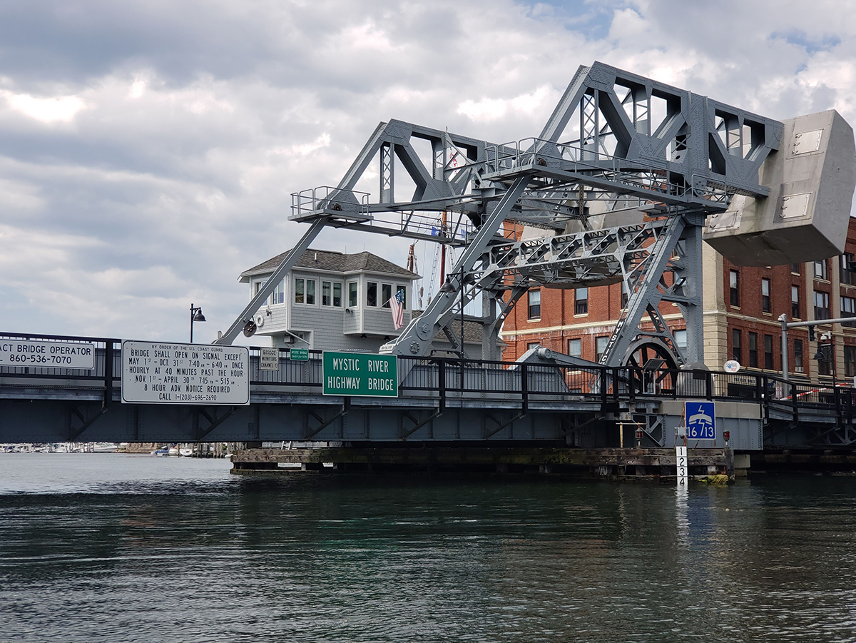 over Mystic old iron bridge on Main Street and