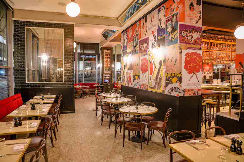 restaurants with brick walls, no tablecloths,