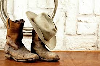 his expensive cowboy boots up on the other chair